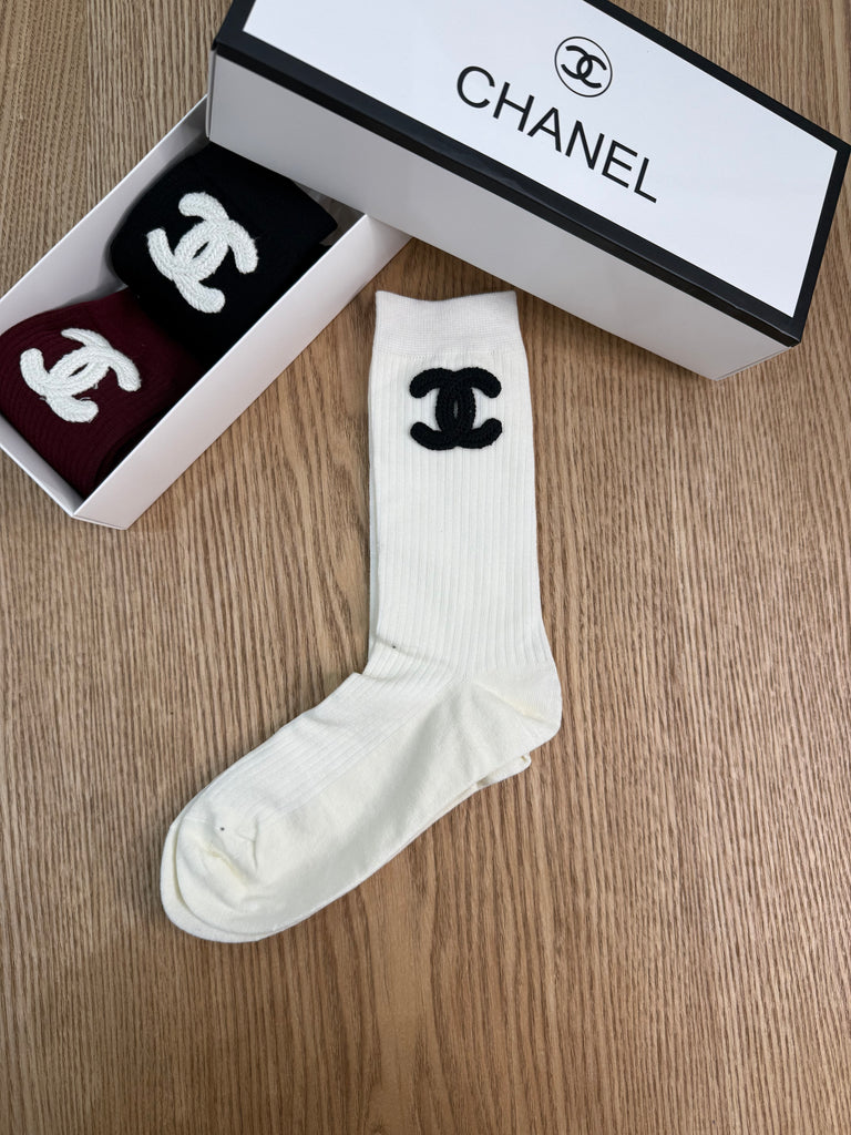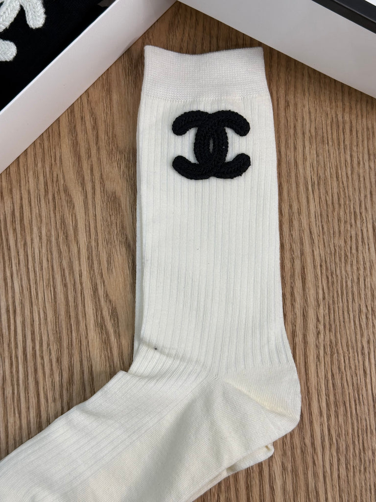 Calzini in cotone elasticizzato di alta qualità con lavorazione a coste nella parte alta e logo “CC” ricamato a contrasto sul bordo. Morbidi, avvolgenti e raffinati, uniscono comfort e stile iconico, perfetti per completare look casual-chic e athleisure con un dettaglio luxury.