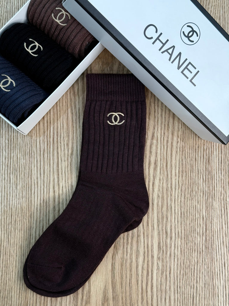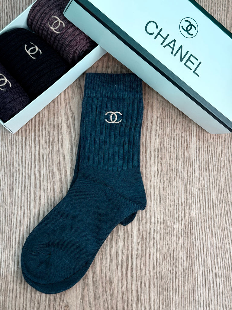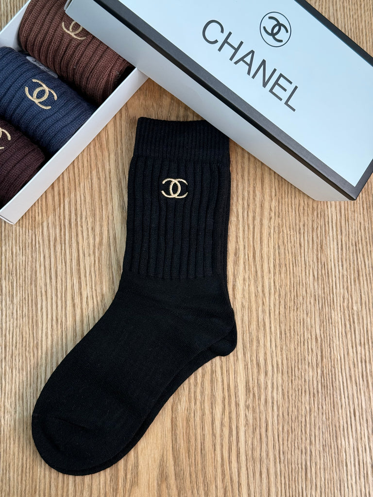 Calzini in cotone elasticizzato di alta qualità con lavorazione a coste nella parte alta e logo “CC” ricamato a contrasto sul bordo. Morbidi, avvolgenti e raffinati, uniscono comfort e stile iconico, perfetti per completare look casual-chic e athleisure con un dettaglio luxury.