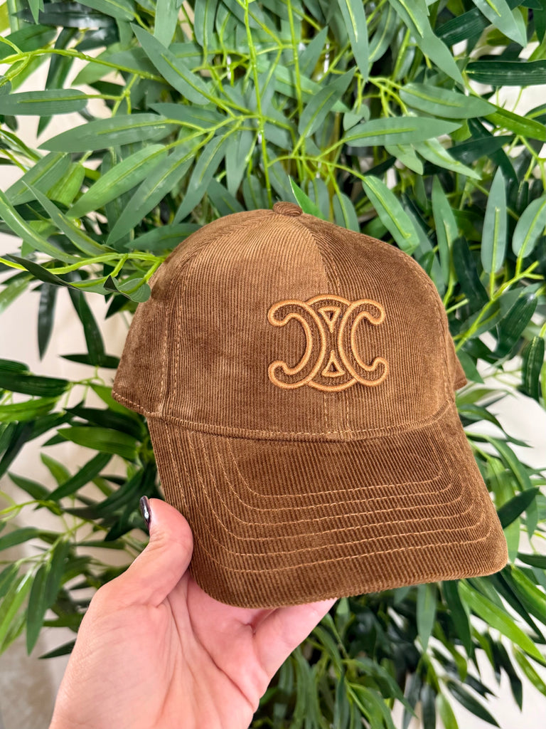 Baseball cap in morbido velluto a coste color marrone, con visiera strutturata e logo ricamato tono su tono sul frontale. Un accessorio casual-chic che unisce comfort e stile, perfetto per dare un tocco ricercato a look streetwear e outfit quotidiani.