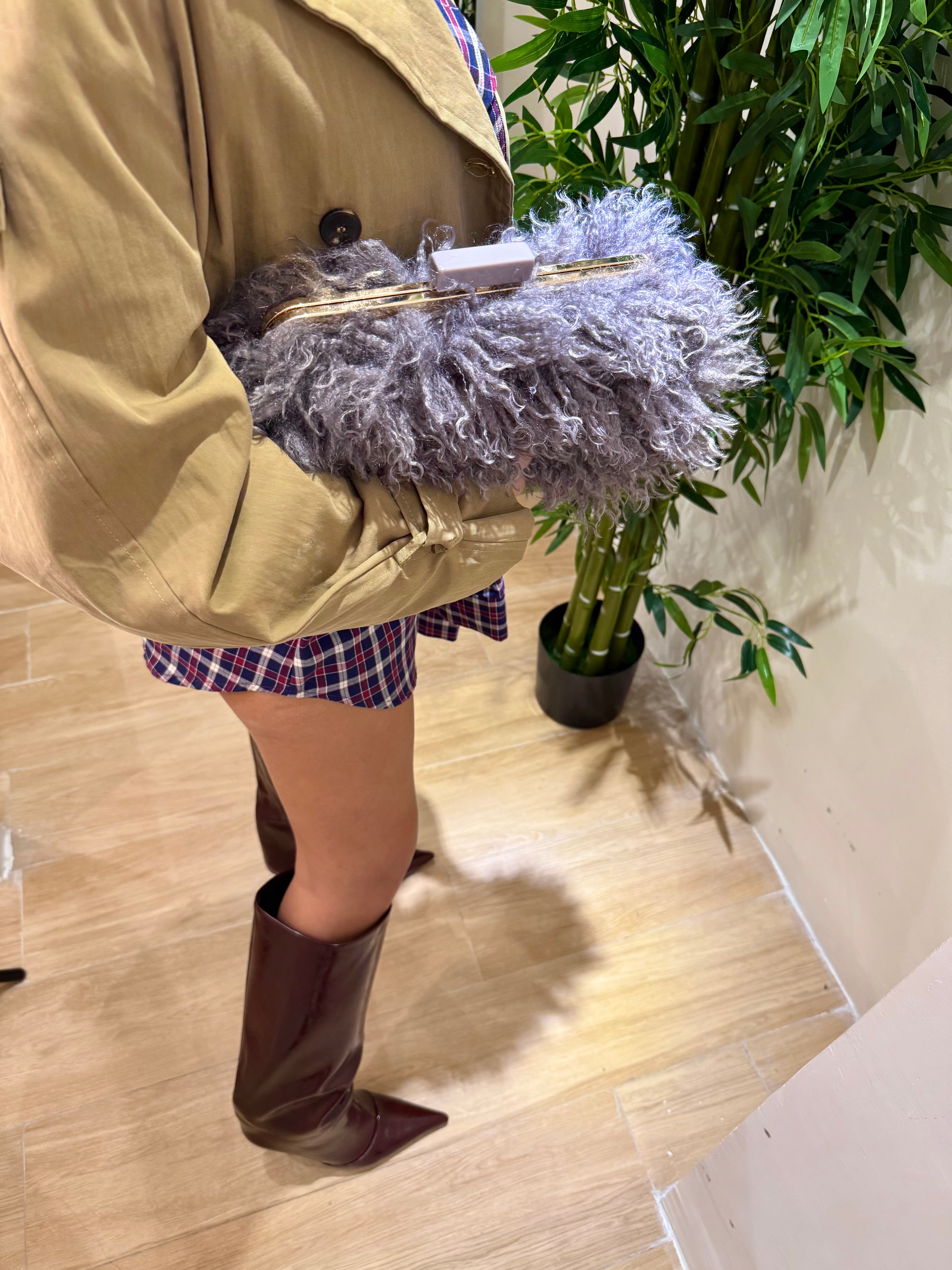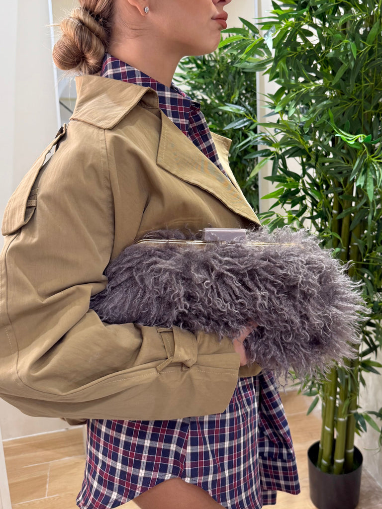 La maxi clutch Mongolia un accessorio di alta qualità realizzato in pelliccia sintetica che imita lo stile mongolo. La sua forma elegante e sofisticata la rende perfetta per occasioni speciali e serate di gala.