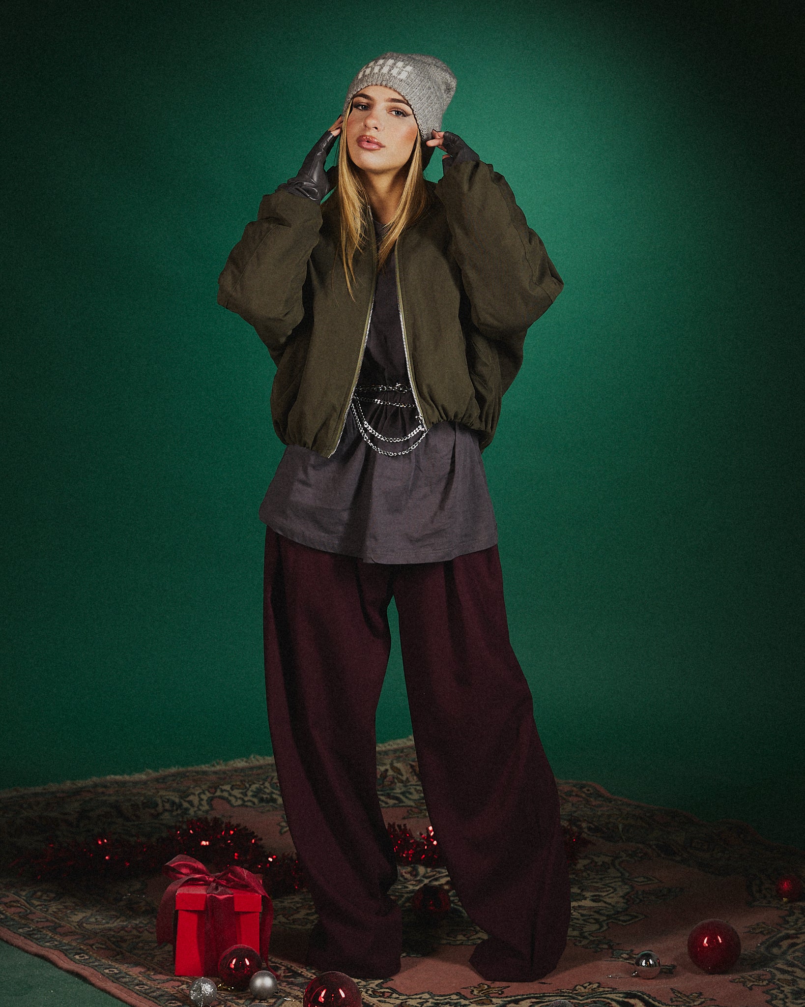 Bomber Lumina in tessuto tecnico premium, leggero all’esterno ma trapuntato internamente per garantire calore e comfort senza ingombro. La linea morbida con elastico al fondo crea un volume moderno e pulito, perfetto per layering e look street chic.