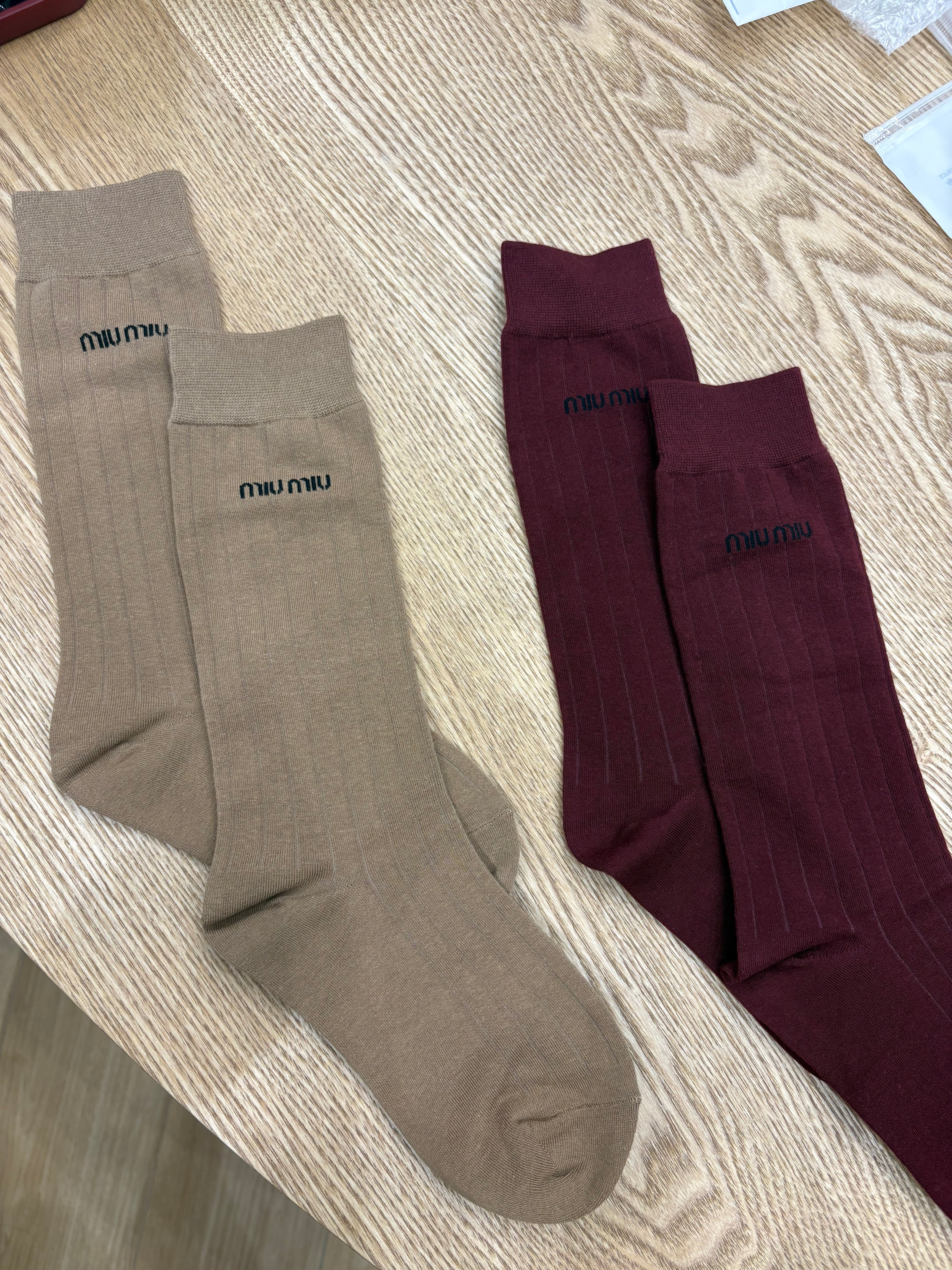Sofisticati e femminili, i calzini Miu Miu Medy in tonalità bordeaux sono valorizzati dalla scritta Miu Miu in nero. La texture morbida e la lunghezza media li rendono ideali per aggiungere un tocco chic e ricercato a ogni outfit quotidiano