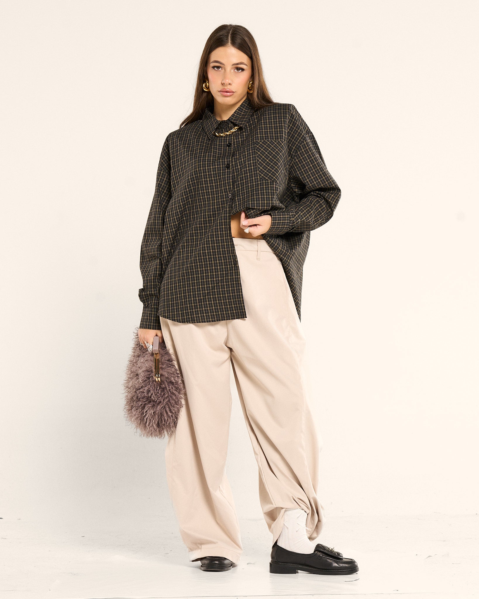 Ampia, strutturata e contemporanea, TAVEN è la camicia over che gioca con volumi e pattern. Le spalline marcate e i quadri piccoli creano un equilibrio perfetto tra eleganza e personalità. Disponibile nelle varianti nero/rosso e nero/giallo, per chi ama distinguersi con stile.