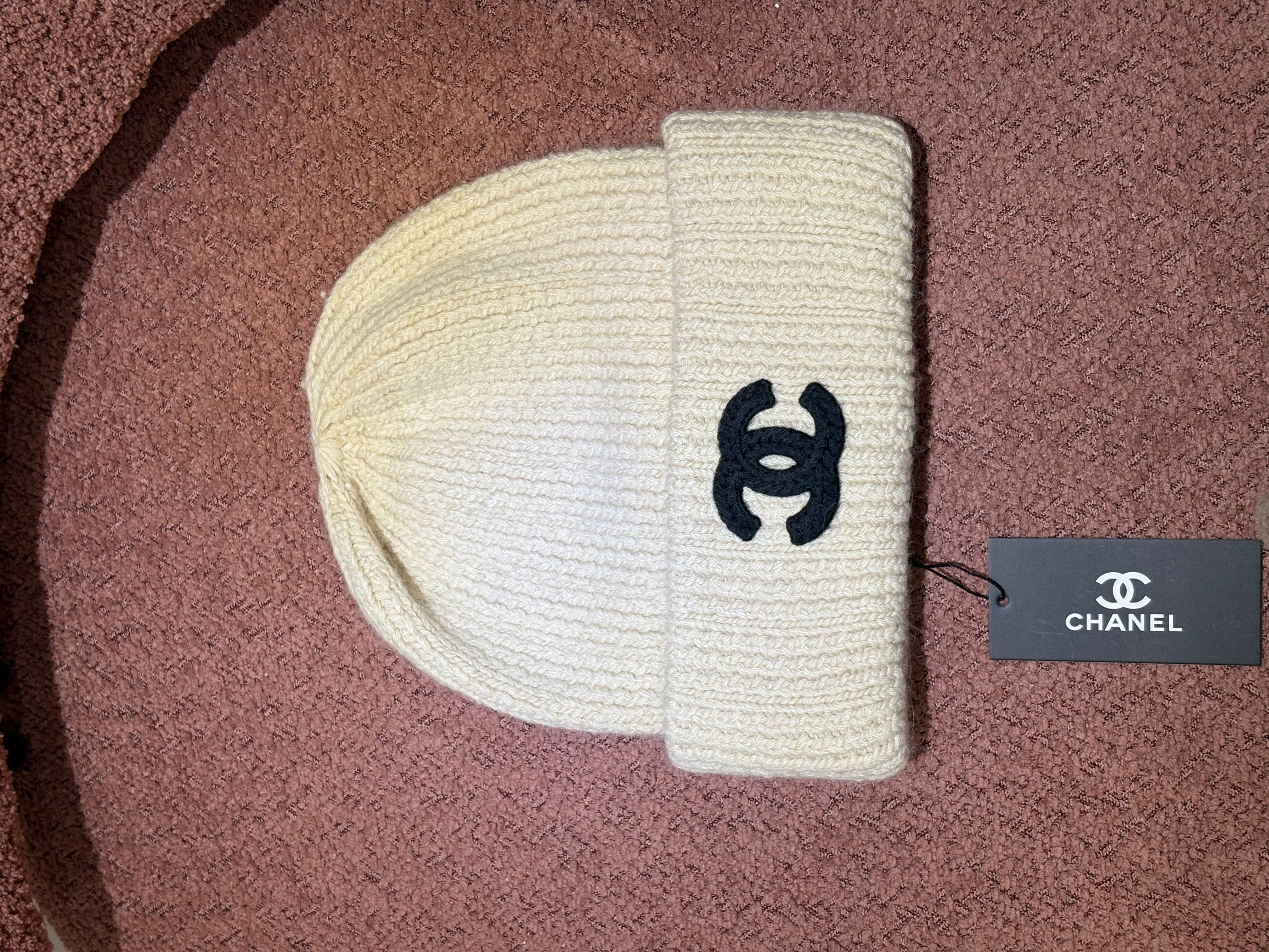 Un grande classico reinterpretato in chiave moderna. Questo cappello in lana intrecciata beige è valorizzato dal logo Chanel nero, simbolo di eleganza discreta. Morbido, caldo e versatile, completa con classe sia outfit casual che più sofisticati.
