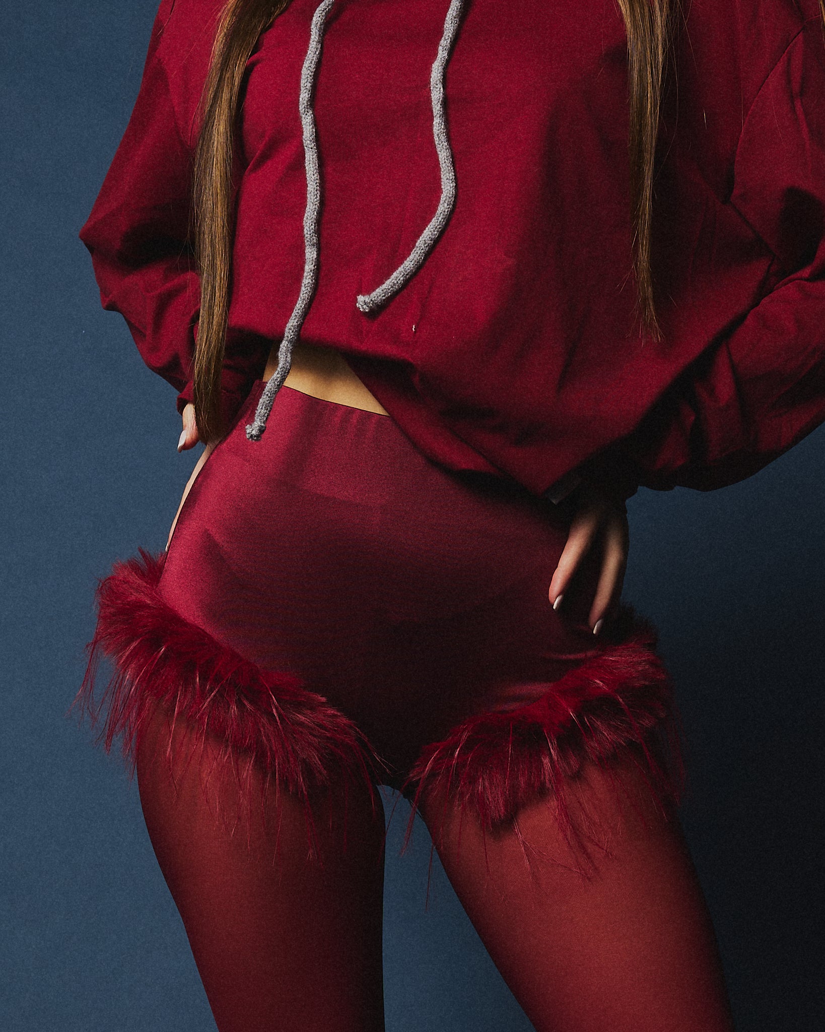 Shorts culotte a vita alta dal design audace e femminile, caratterizzati da una linea pulita e avvolgente che valorizza la silhouette.