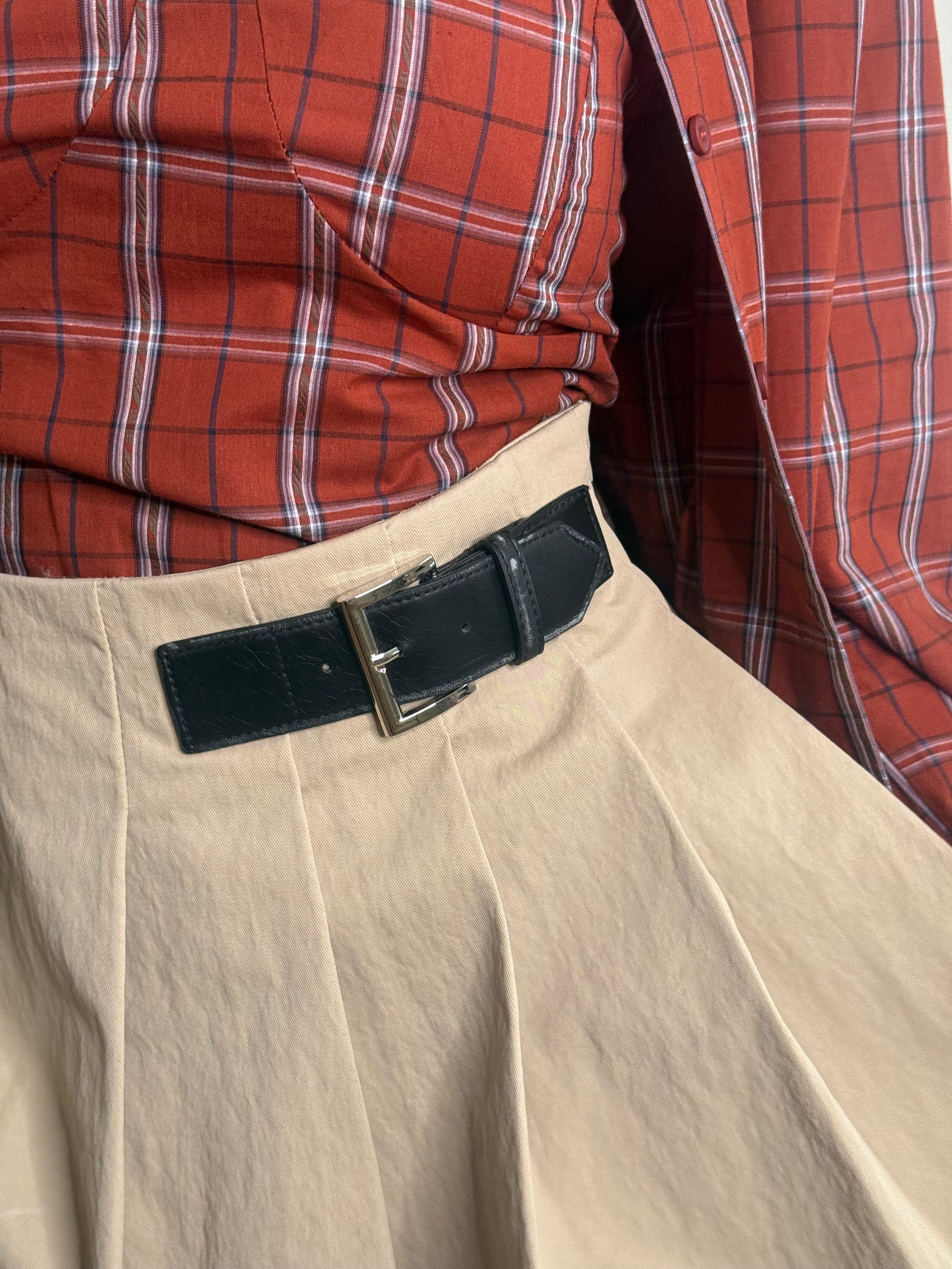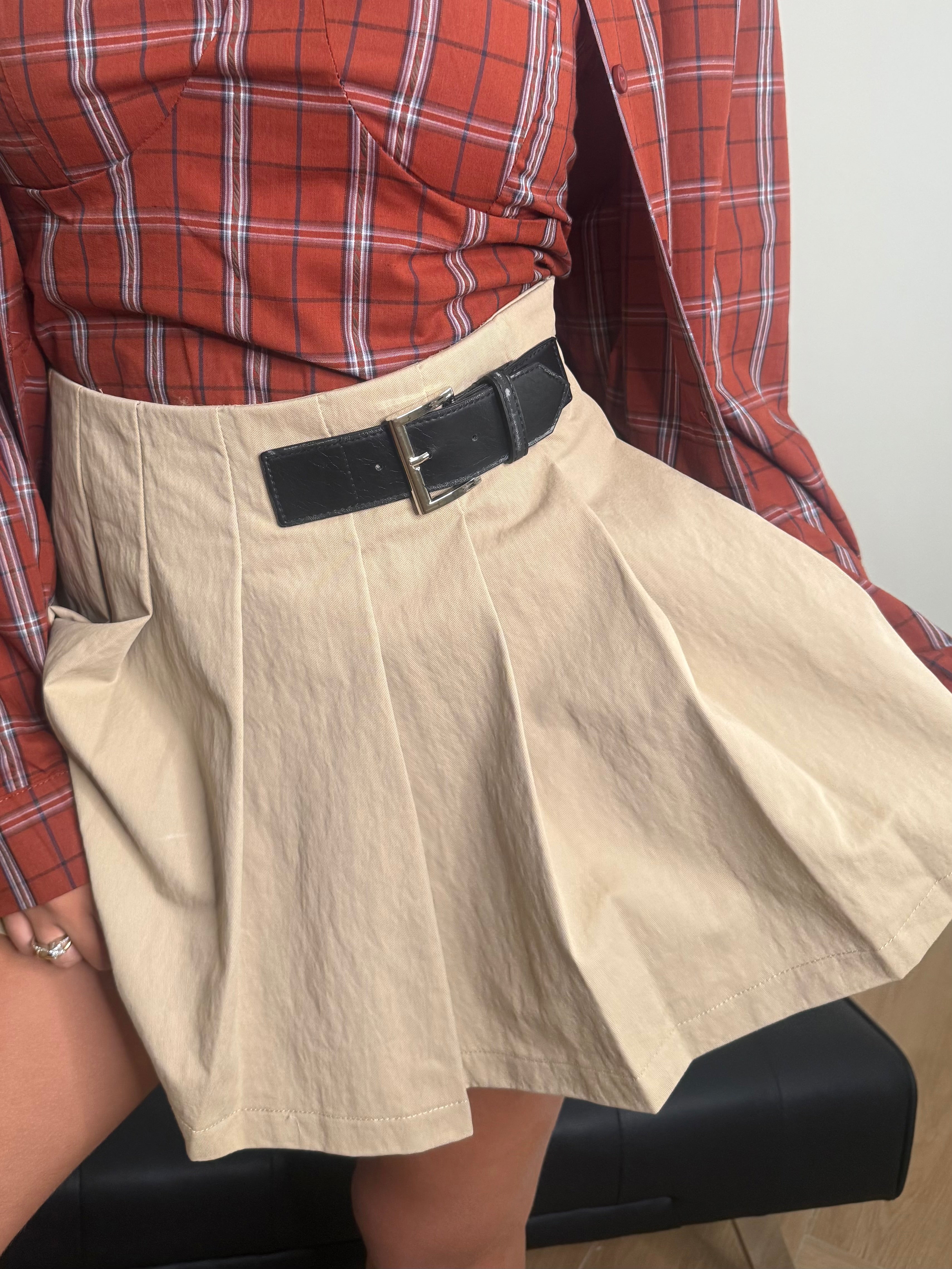 Un classico rivisitato in chiave contemporanea. La gonna a pieghe stile college firmata Lumina è arricchita da un dettaglio distintivo: la cintura laterale in pelle nera, che dona carattere e modernità al capo. La linea corta e dinamica sottolinea la femminilità con un tocco giovane e sofisticato, perfetta da abbinare a camicie, blazer o maglie leggere per creare look versatili e ricercati