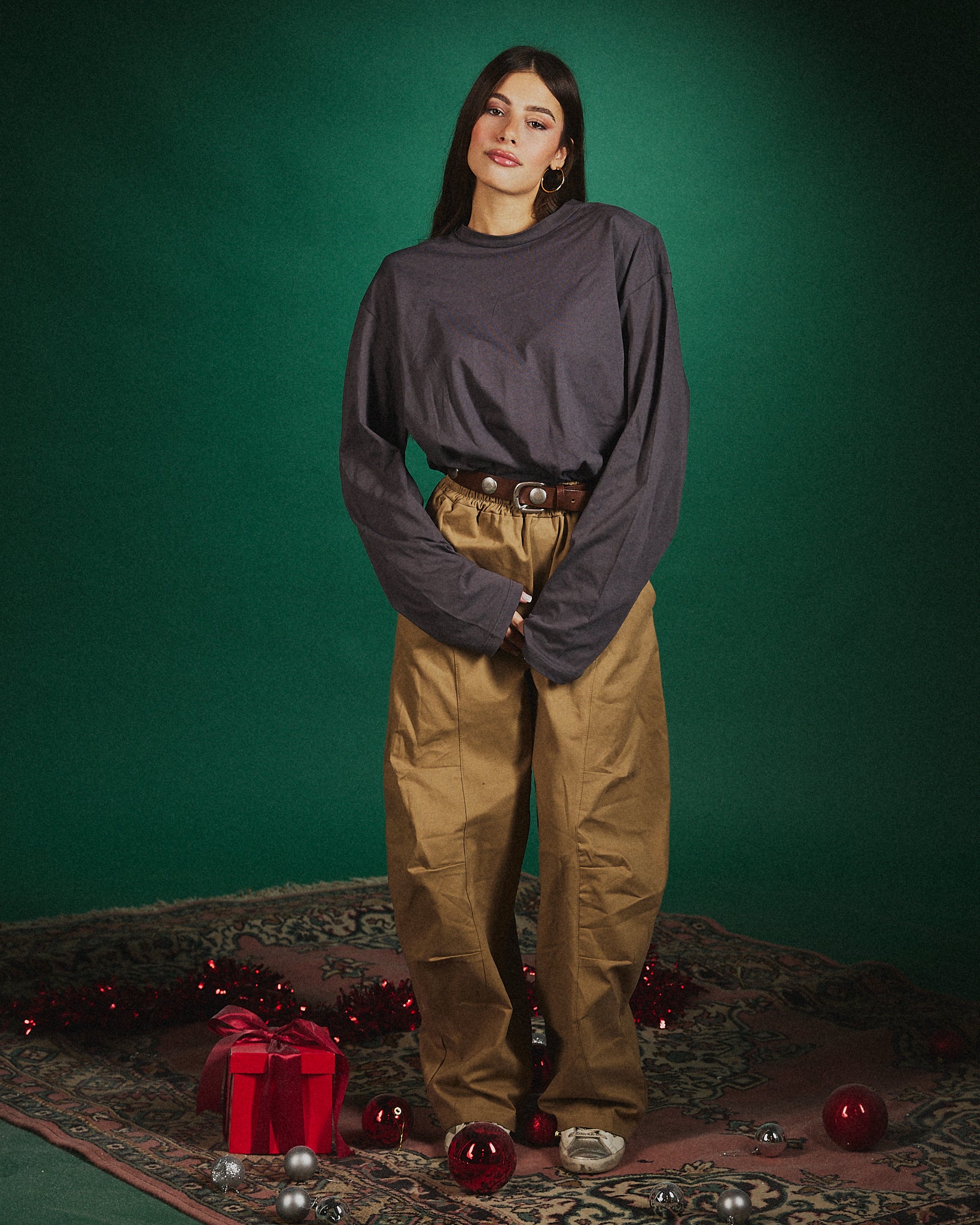 Morbida nella forma, decisa nell’impatto. FYN è la maglia over che gioca con volumi e spalline, trasformando la semplicità in carattere. Il grigio raffinato la rende un capo versatile, essenziale per chi ama un’eleganza discreta ma riconoscibile.