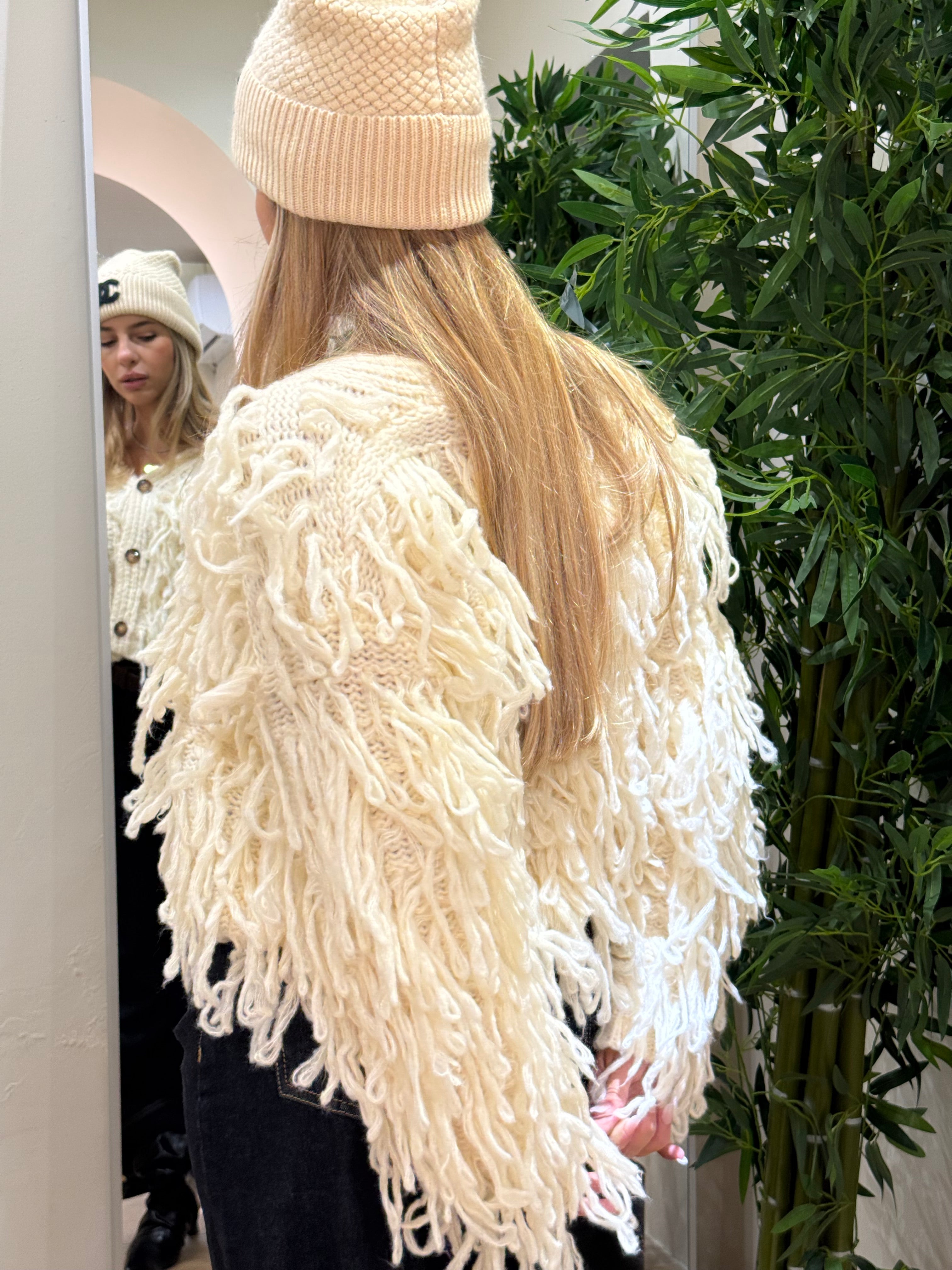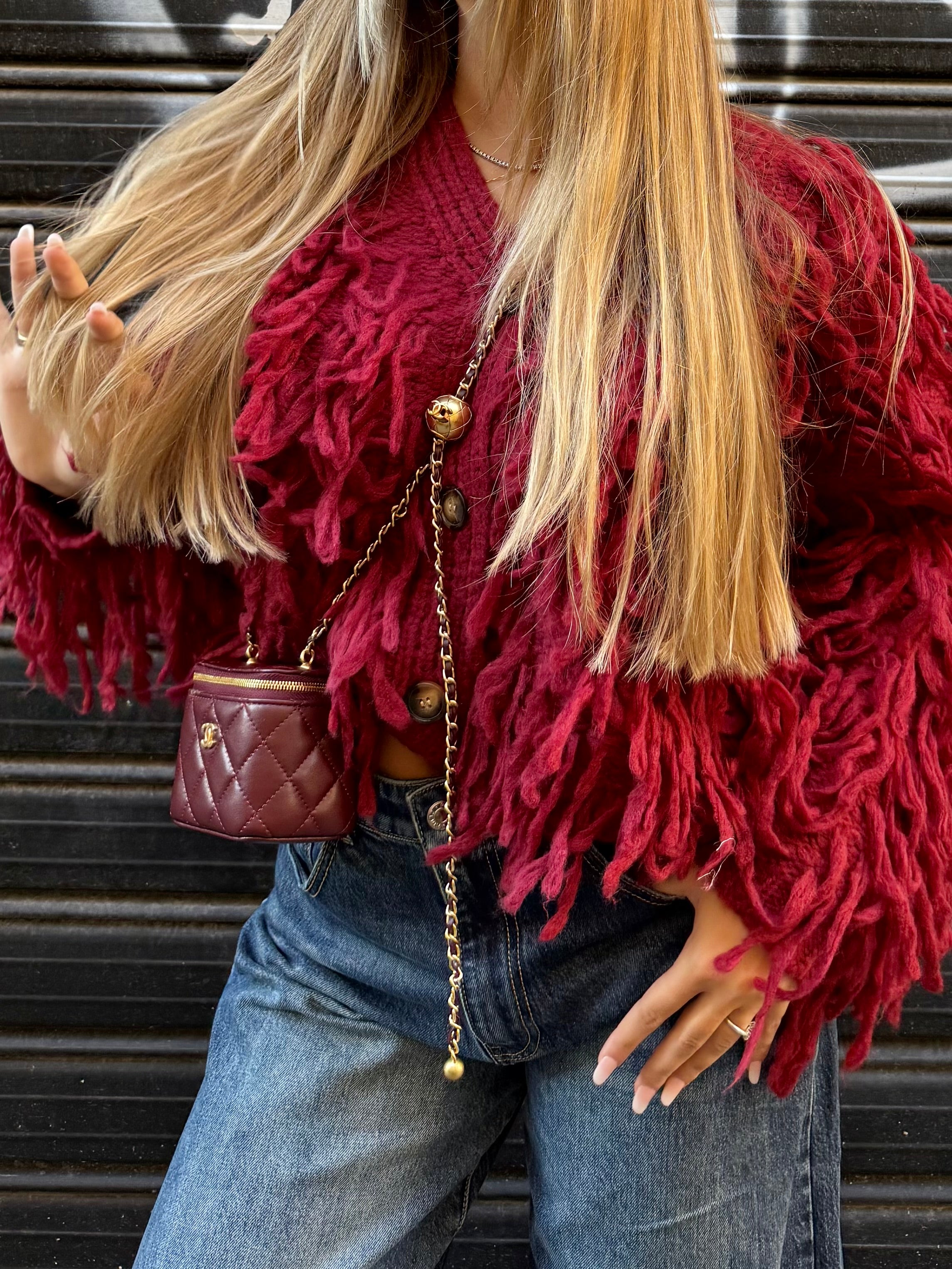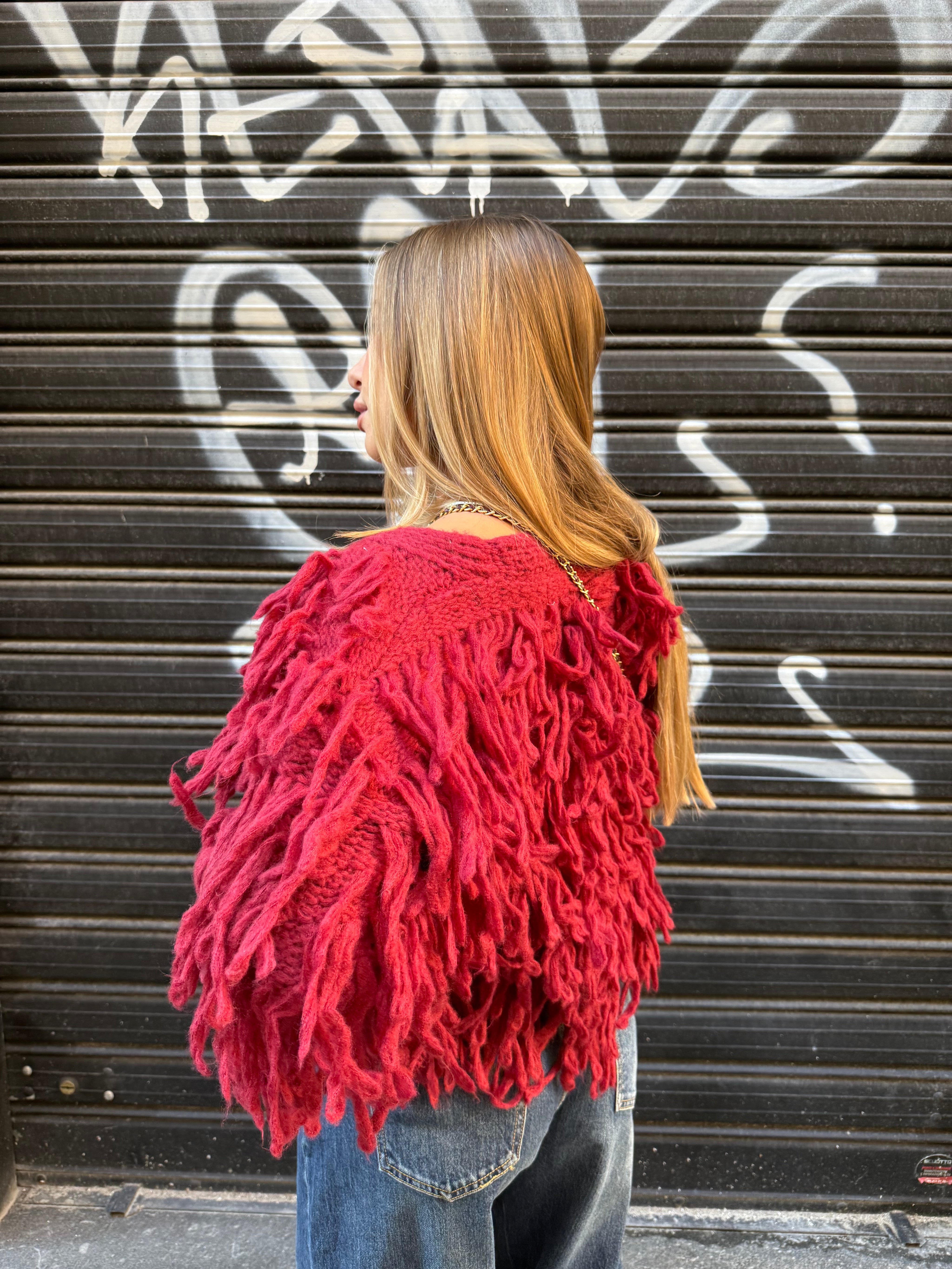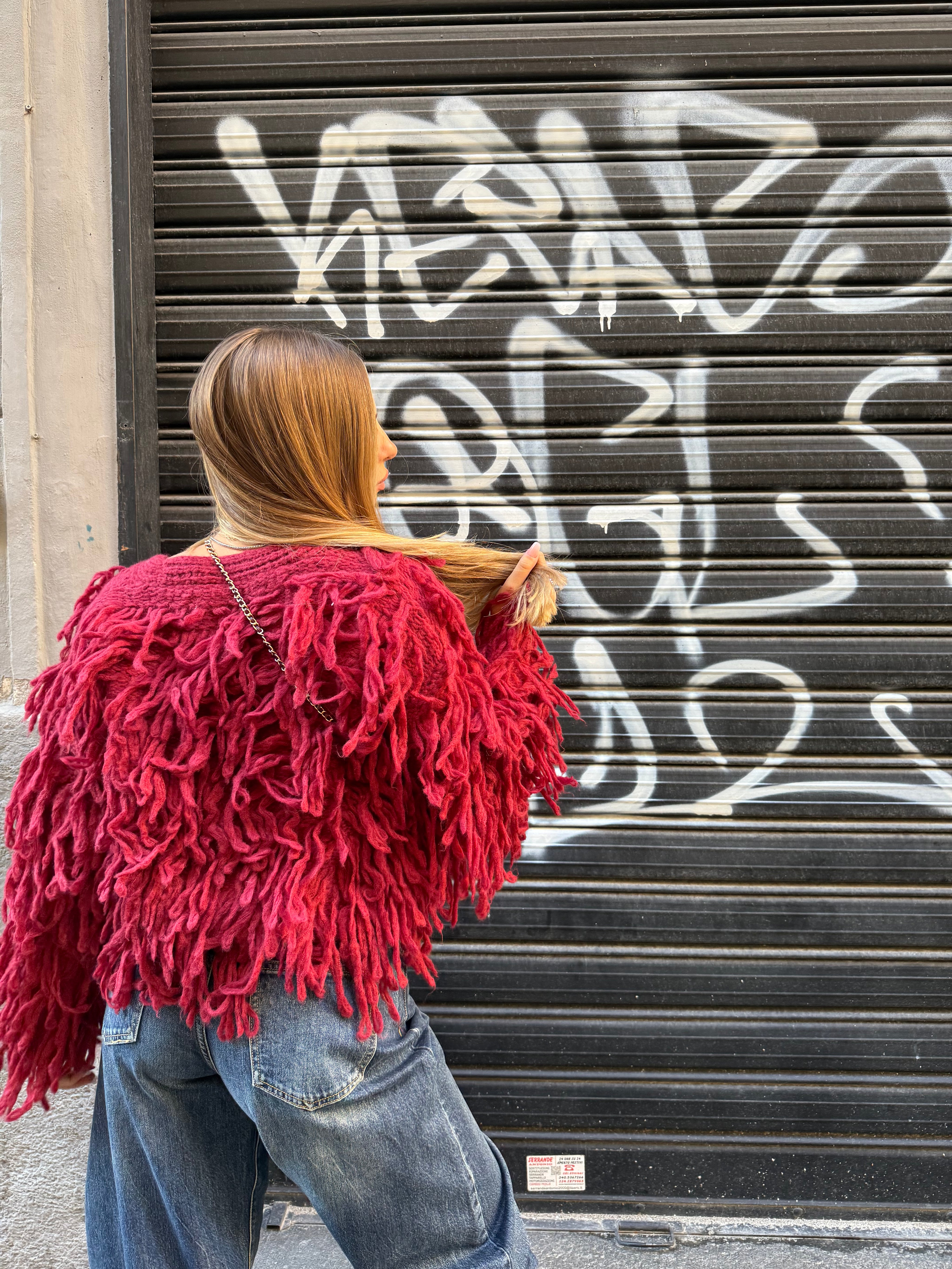 Maglione over dal design destrutturato e materico, realizzato con una combinazione di tessuti sfilacciati e texture contrastanti. I bottoni marroni in evidenza aggiungono un tocco artigianale a un capo volutamente esagerato, caldo e ricco di personalità. Ruvo non segue le regole: le riscrive con stile e sostanza.