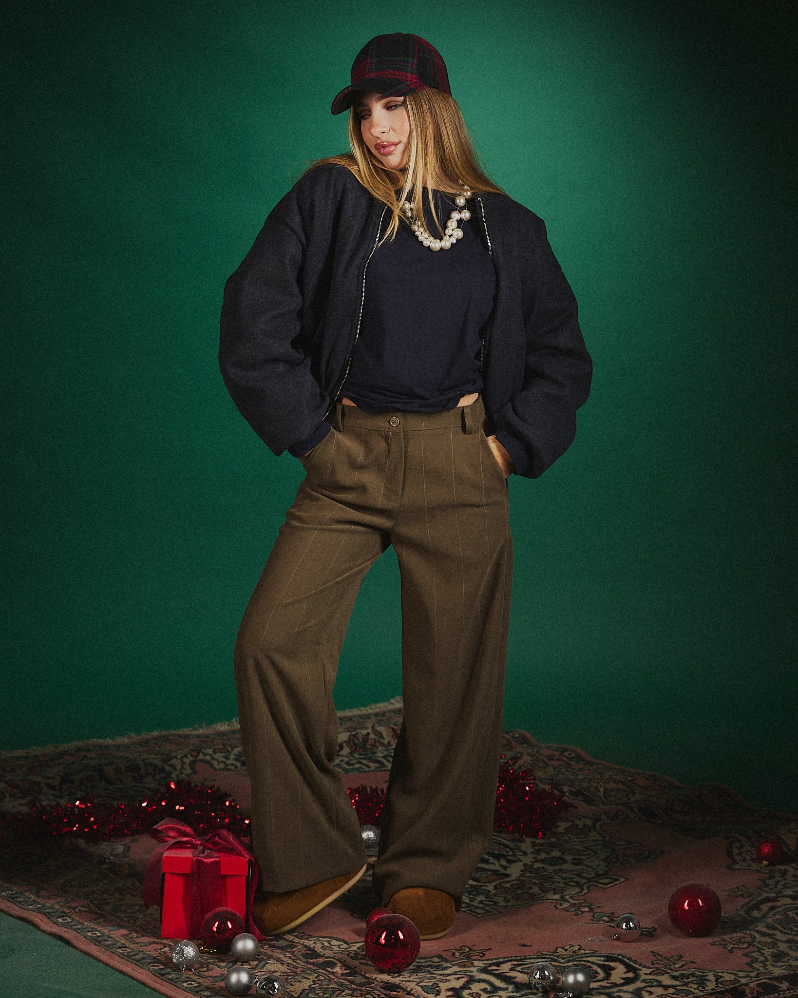 Bomber corto in tessuto caldo, dal volume morbido e contemporaneo. La linea leggermente over dona movimento e stile senza rinunciare al comfort, mentre la zip frontale aggiunge un tocco sport-chic.