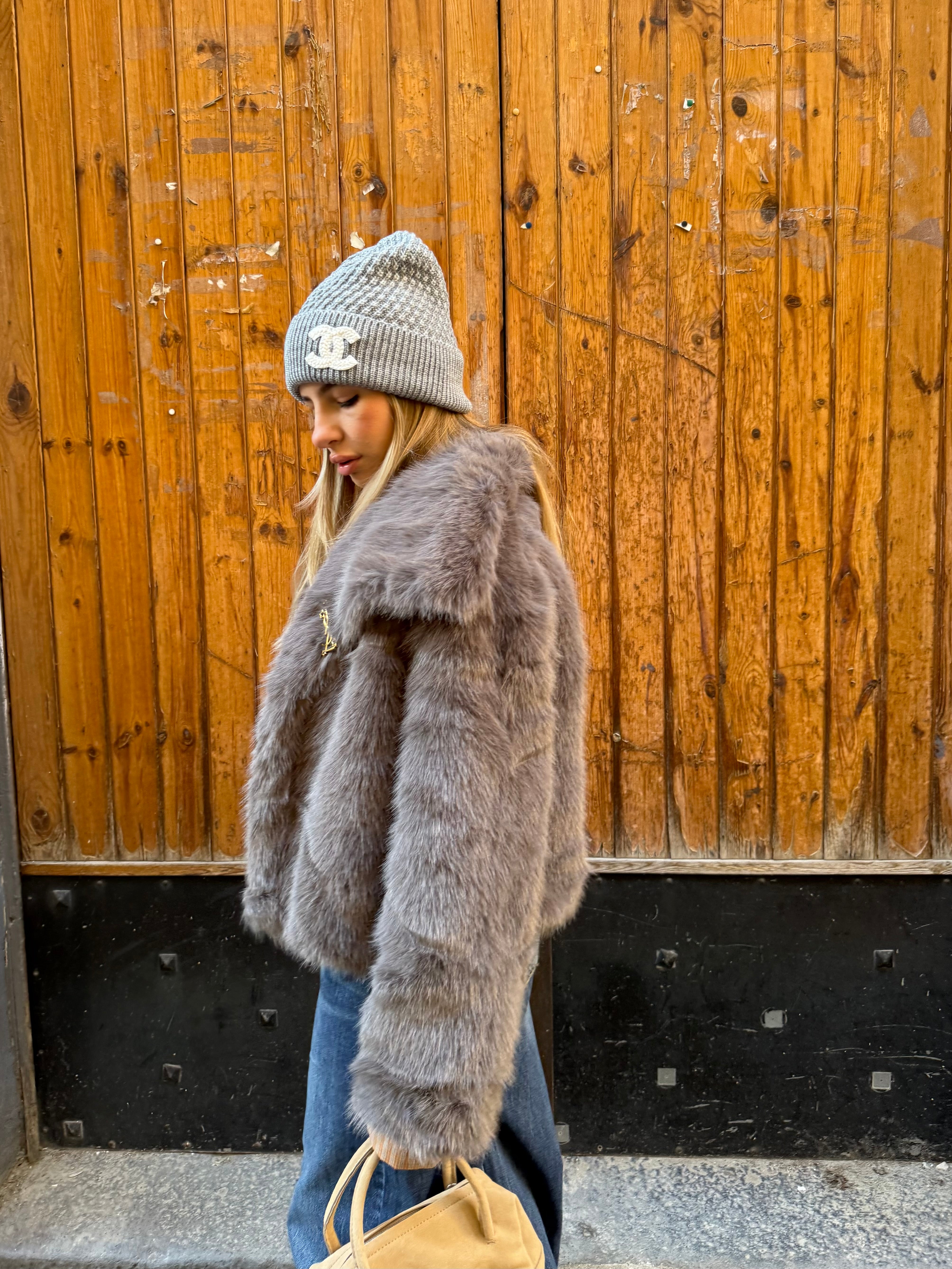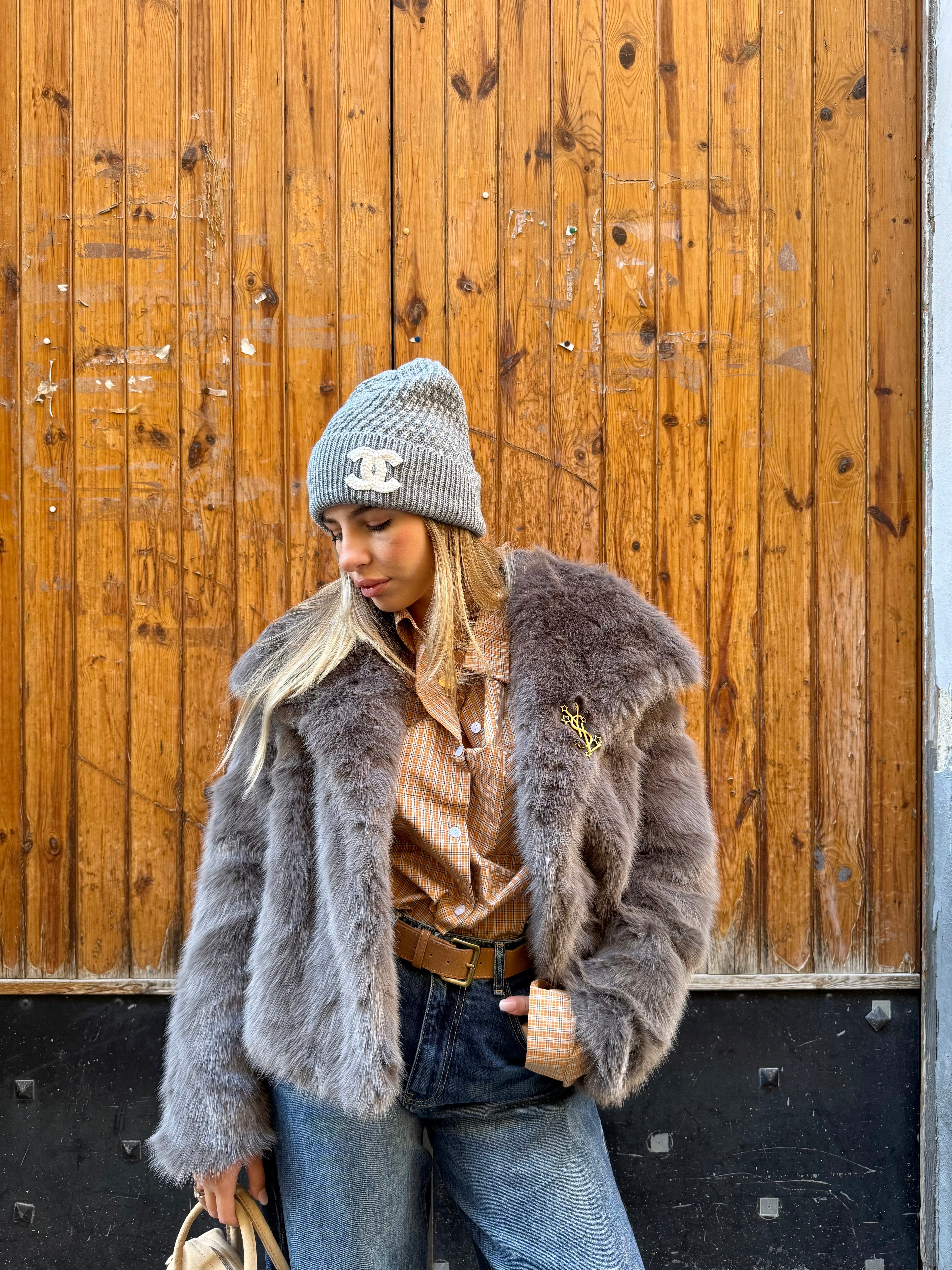Pelliccia grigio scuro dal volume deciso e texture ultra morbida, quasi esagerata al tatto. Il colletto, leggermente allungato, incornicia il viso con carattere e dona al capo un tocco retrò ma audace. Mara è pensata per chi non ha paura di farsi notare, con eleganza e personalità.