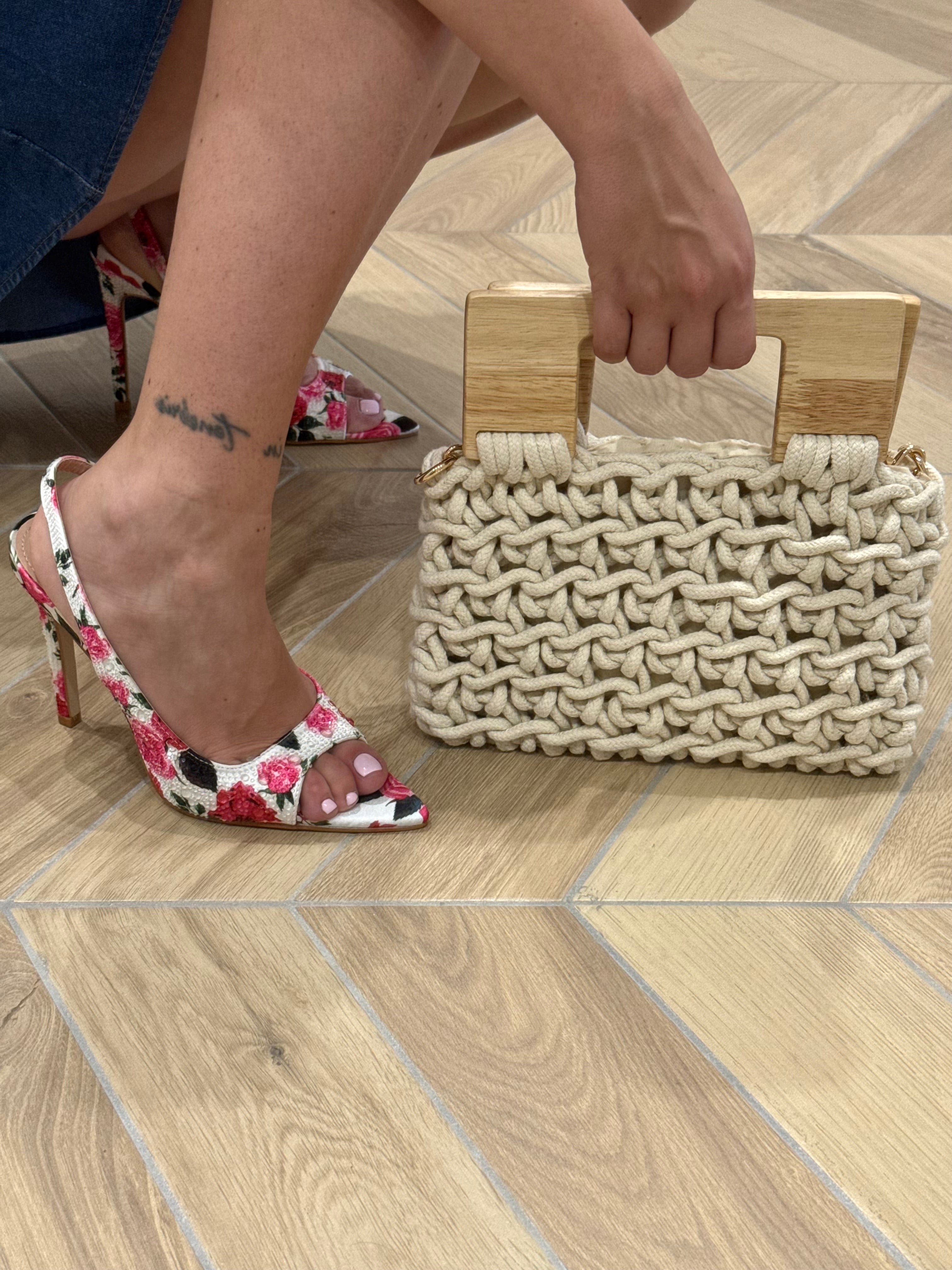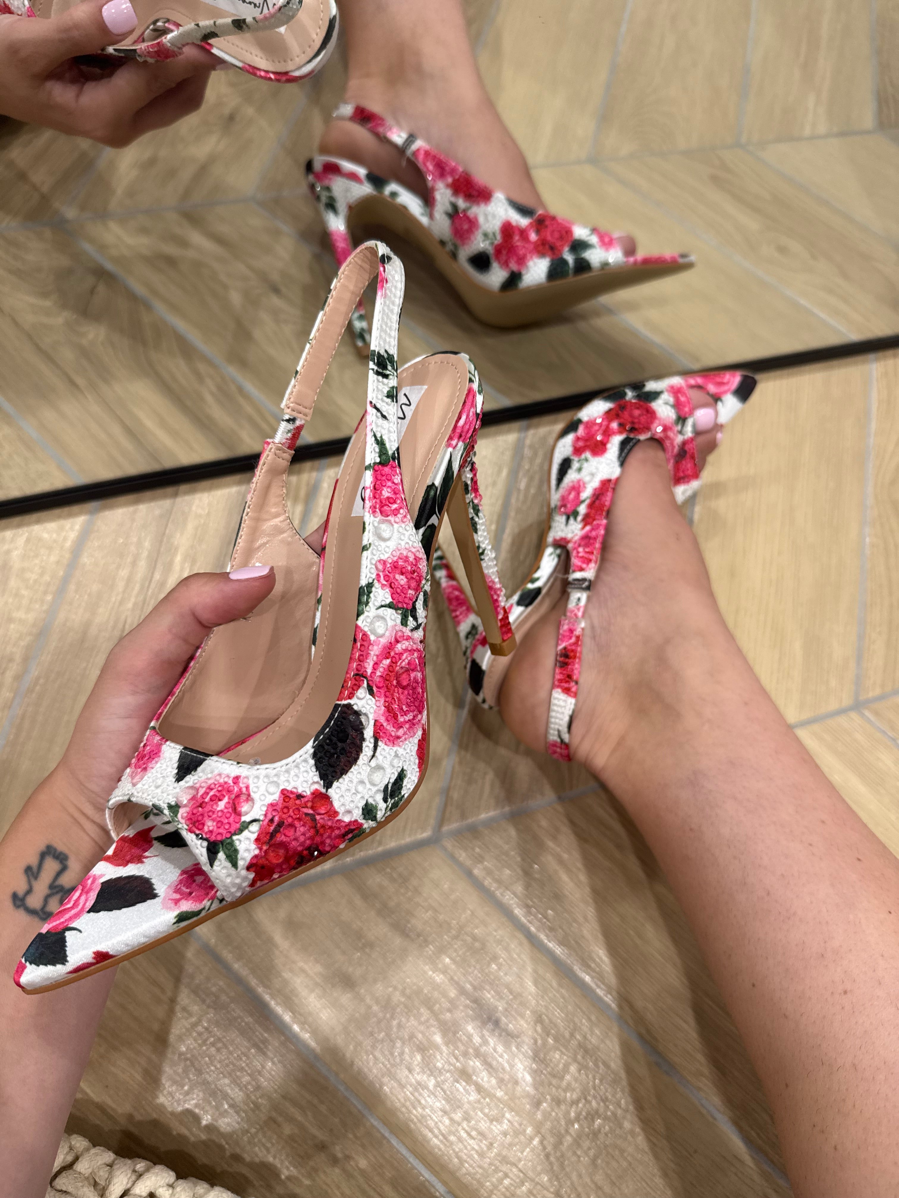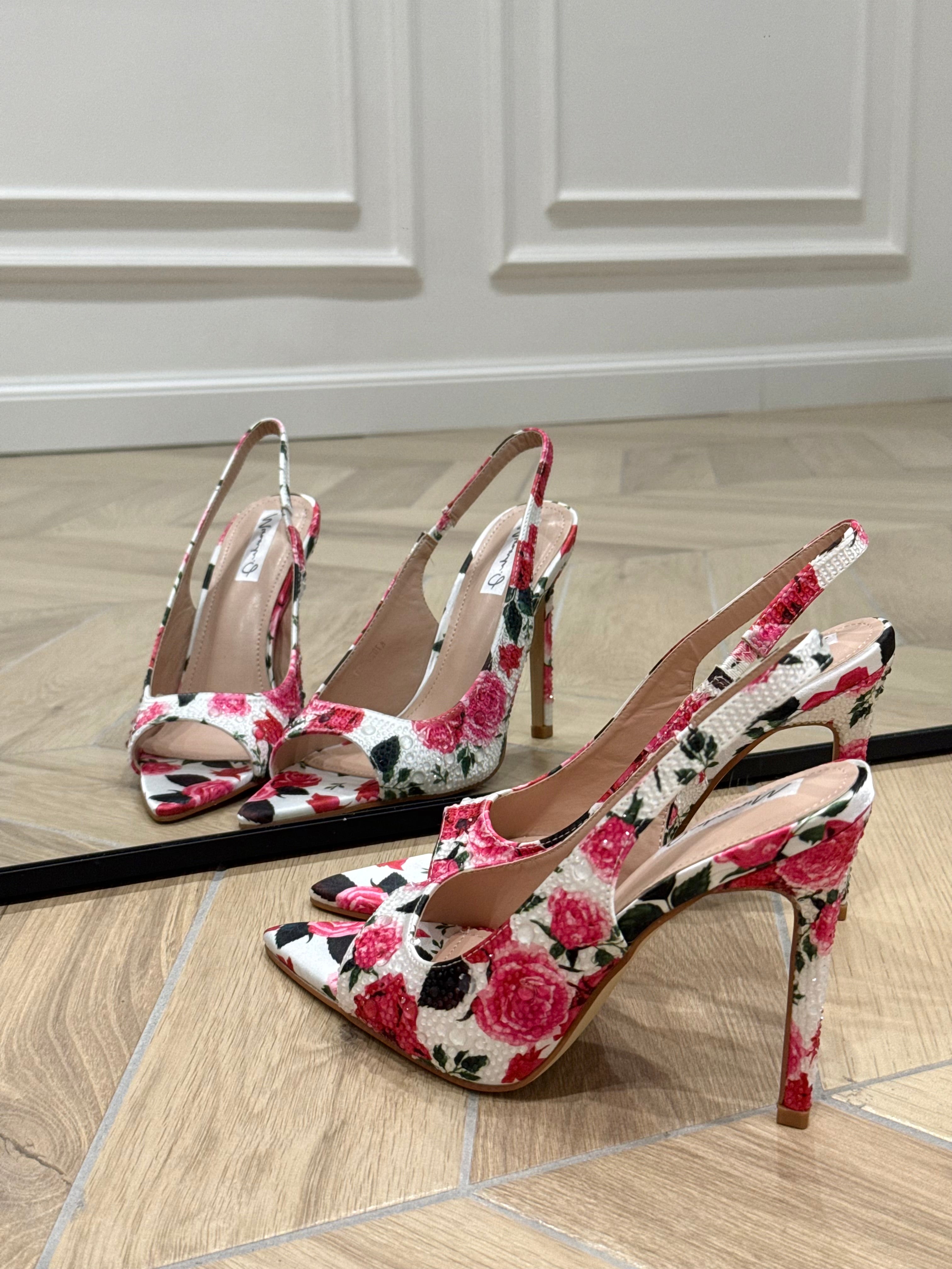 Sandali alti, collo del piede scollato, fantasia rose ed effetto Crystal, alta qualità