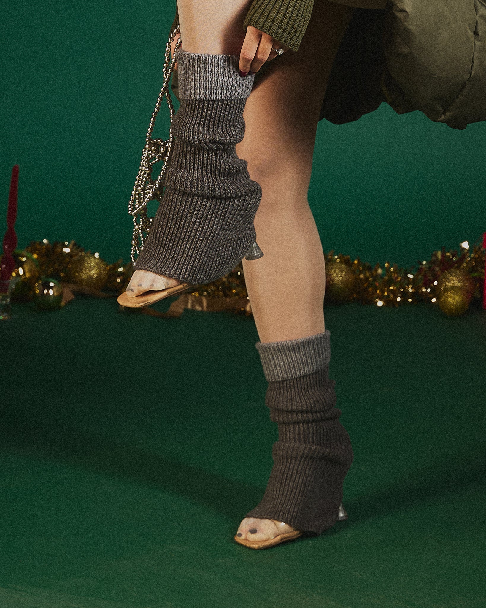 Realizzati in morbida maglia di lana, avvolgono la gamba con un effetto soffice e leggero, perfetti da indossare su décolleté, sandali o stivali per dare volume e carattere al tuo outfit.