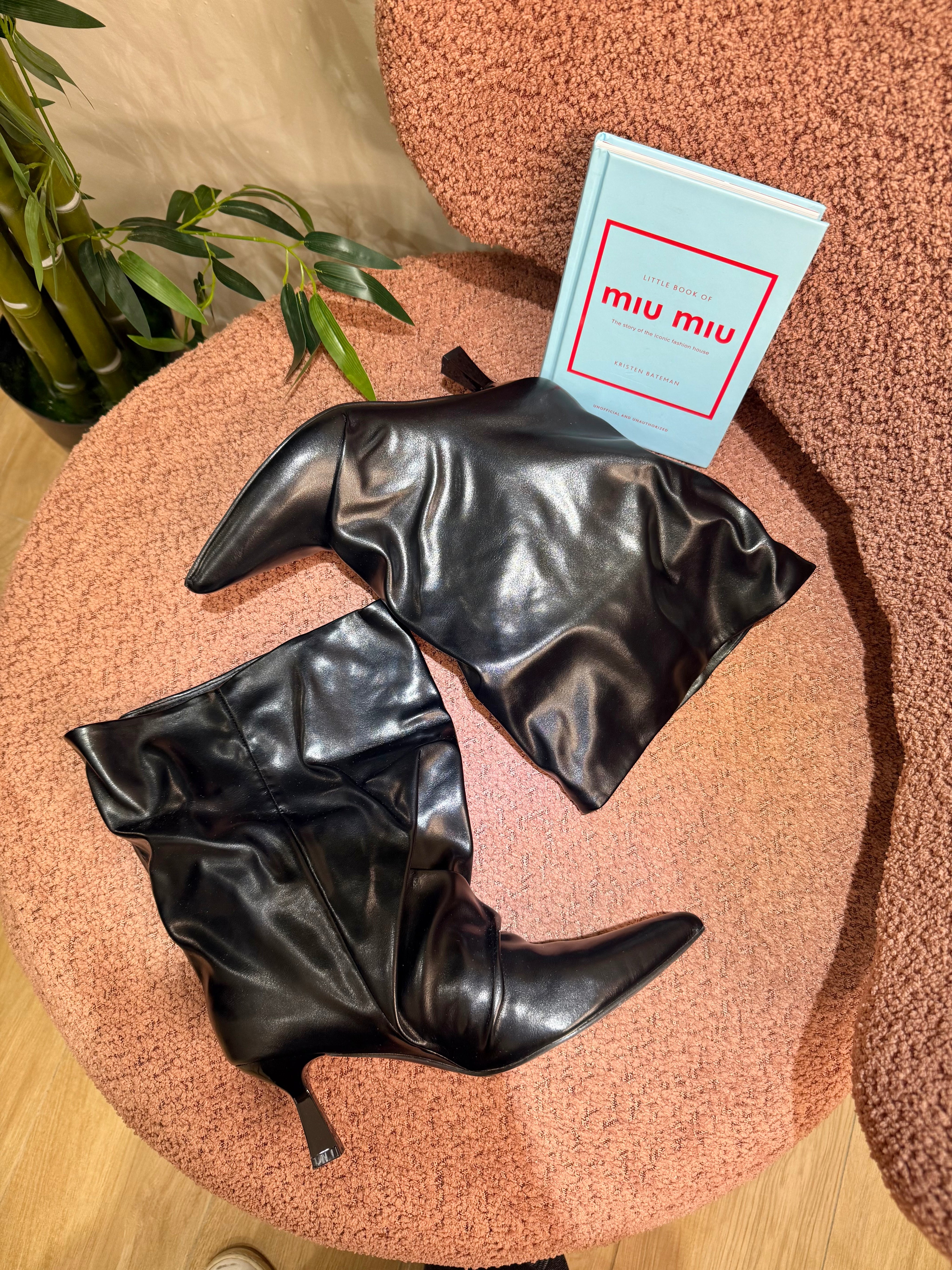 Noir Plissé è lo stivale corto che unisce minimalismo e carattere con una sottile eleganza. Realizzato in pelle nera di alta qualità, il gambaletto si distingue per il dettaglio arricciato sui lati, che aggiunge movimento e un tocco di raffinata originalità senza esagerare.