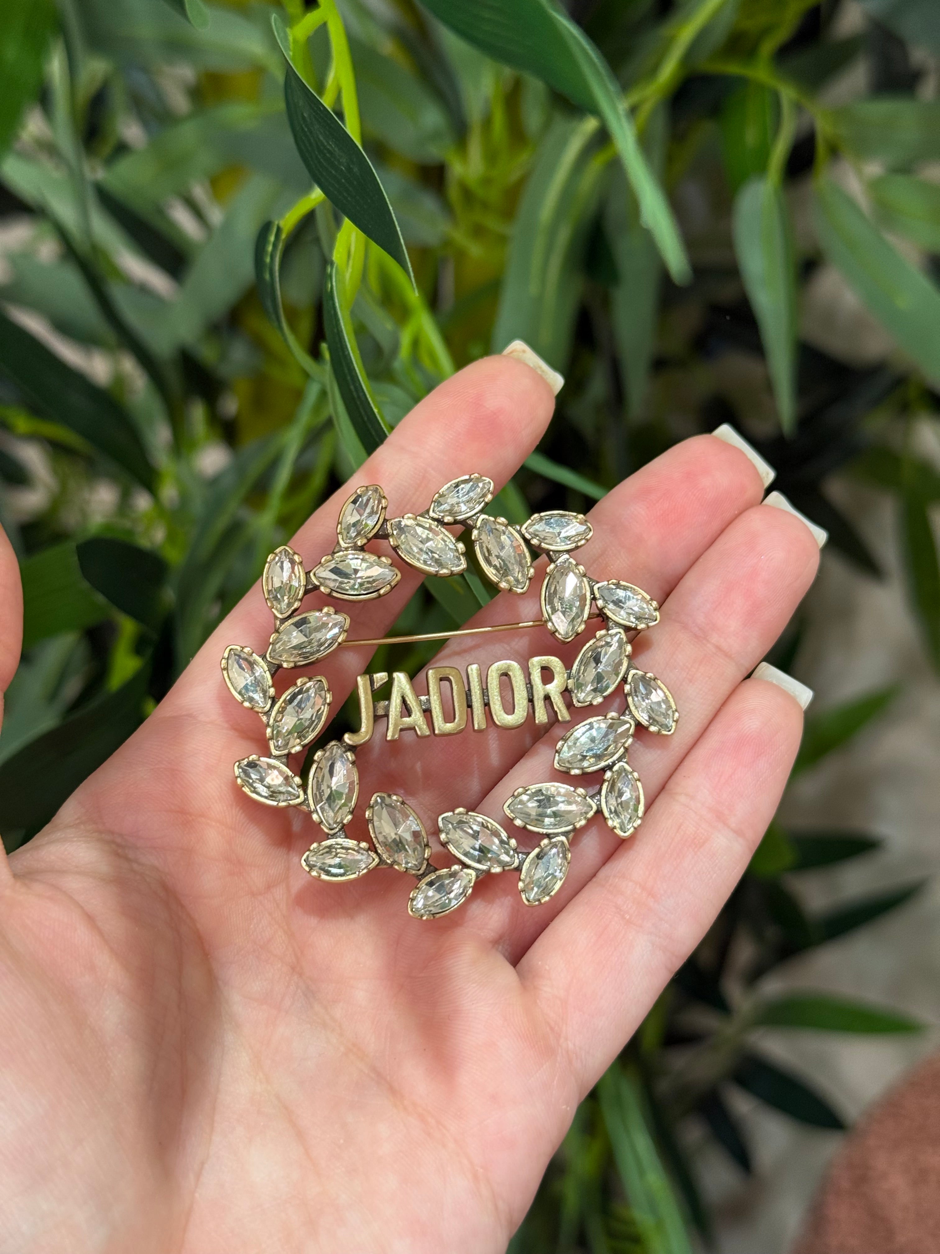 Spilla Dior con strass, brillante ed elegante, perfetta per illuminare e valorizzare qualsiasi outfit.