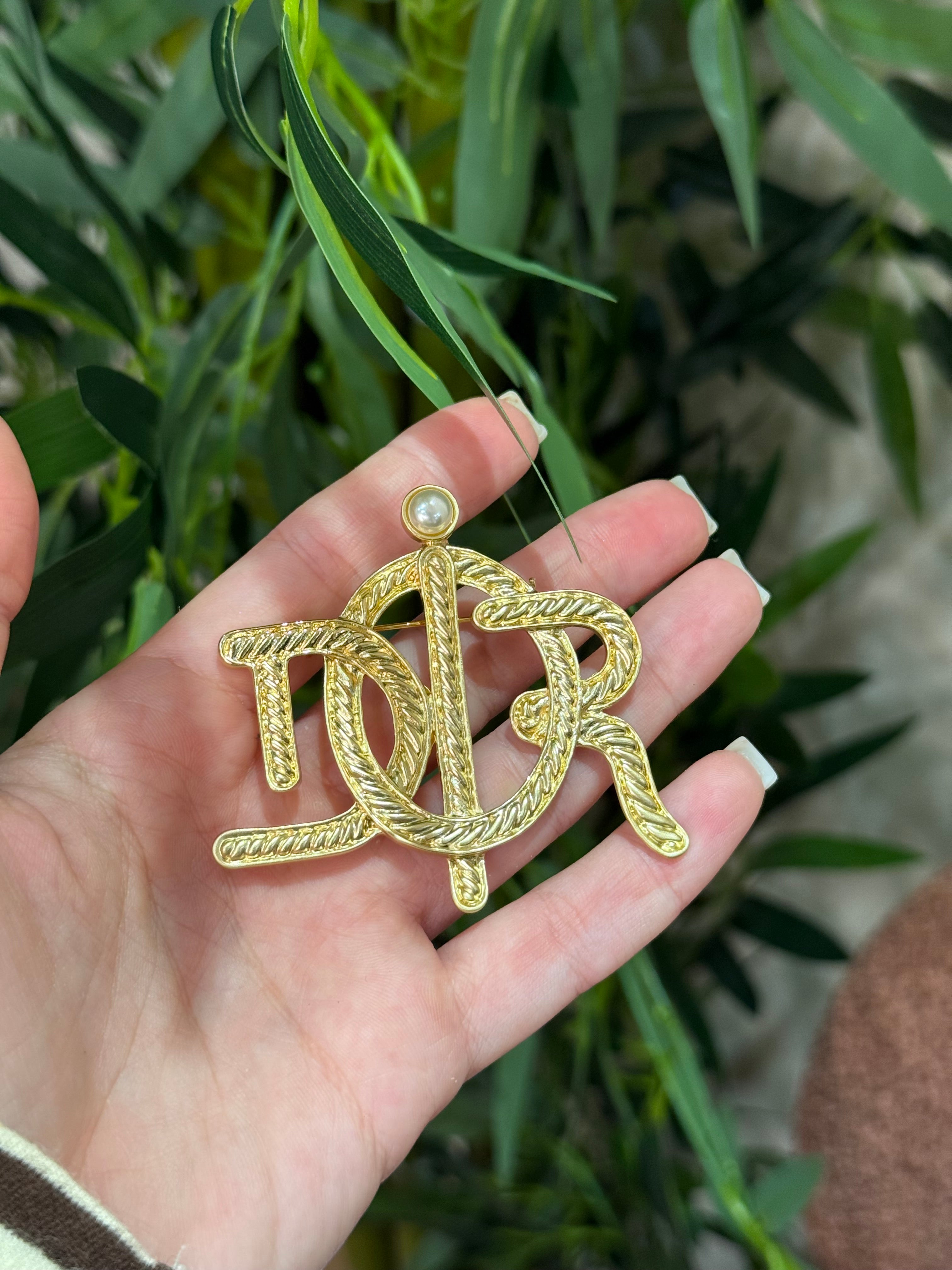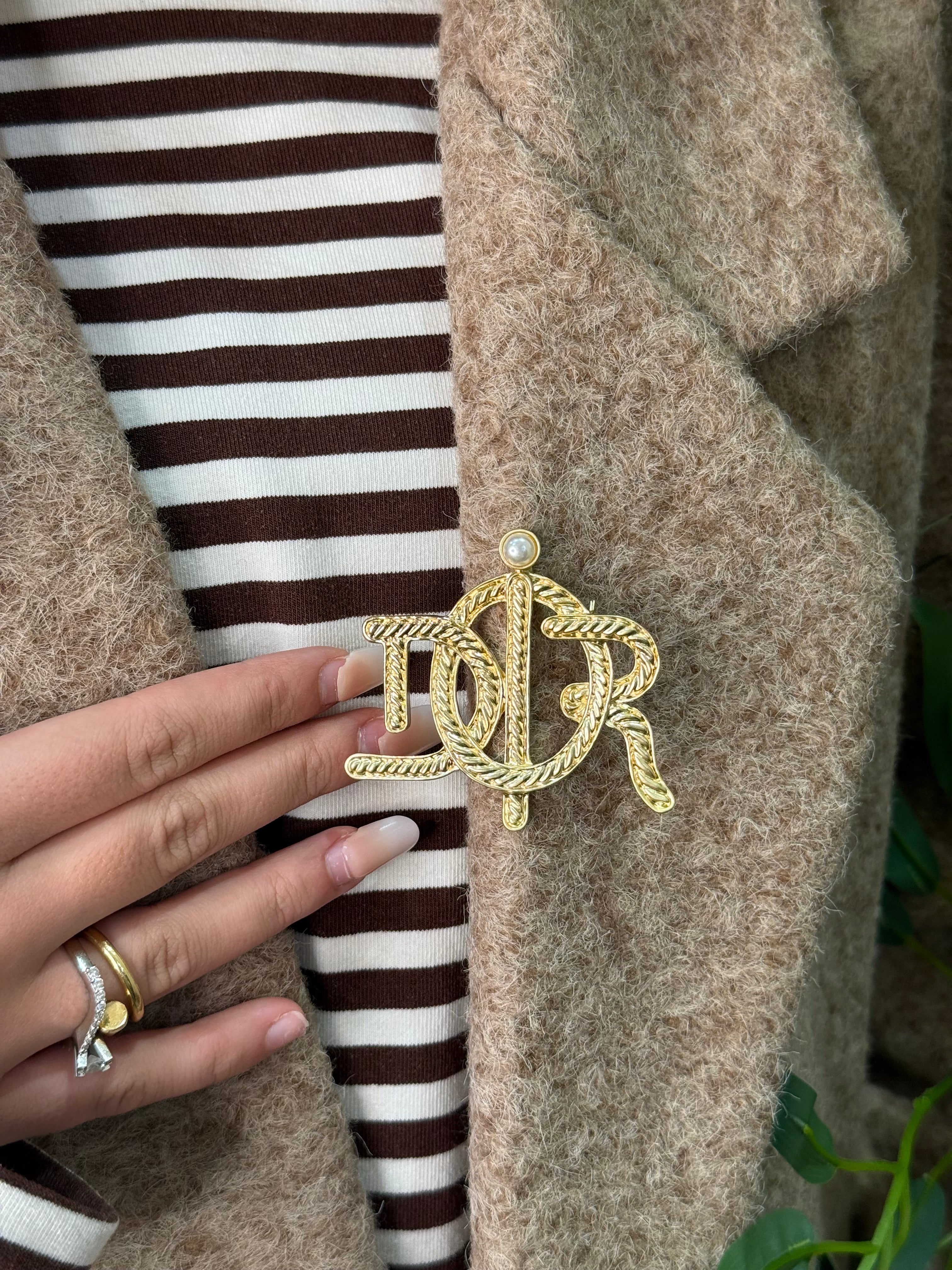 Spilla Dior martellata con perla, elegante e luminosa, ideale per aggiungere un tocco raffinato a qualsiasi look.