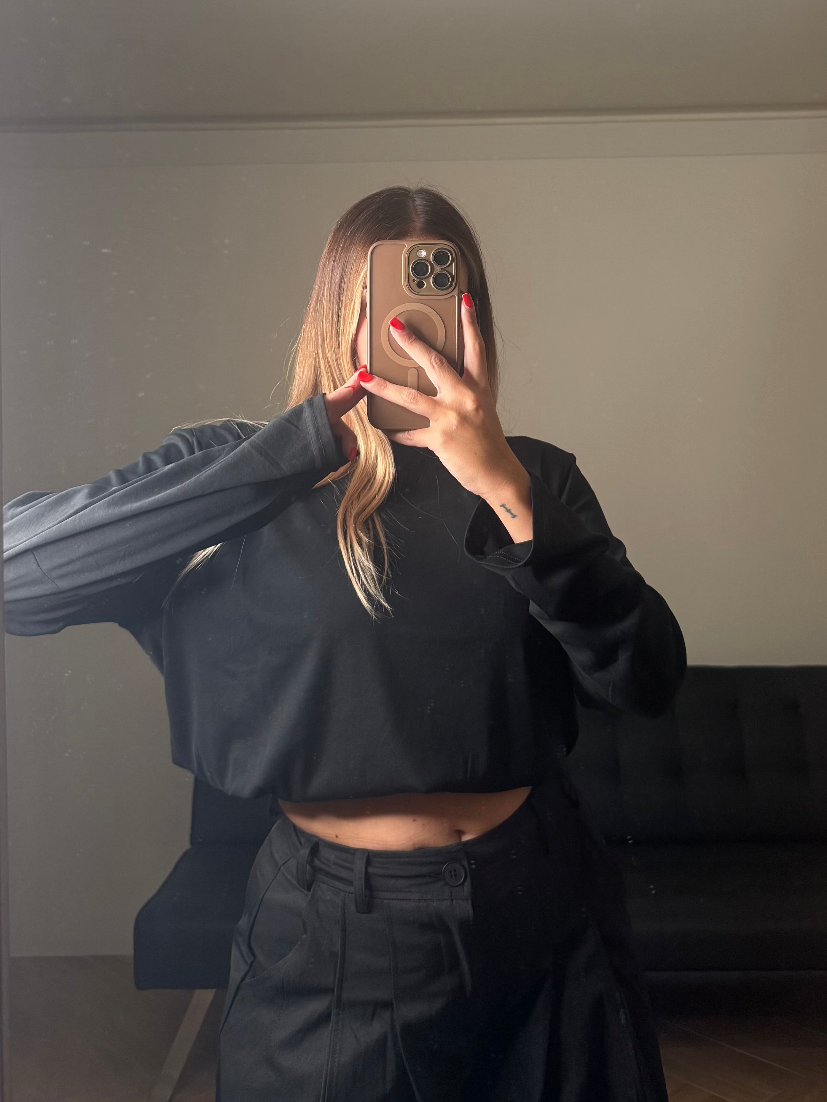 Il basic che non può mancare nel tuo guardaroba: t-shirt girocollo in 100% cotone, morbida e confortevole, con dettaglio arricciato sul davanti che crea un effetto crop moderno e femminile. Versatile e facile da abbinare, è perfetta da sola, con pantaloni a vita alta o sotto blazer e giacche leggere. Un capo best seller che unisce semplicità, comfort e stile contemporaneo